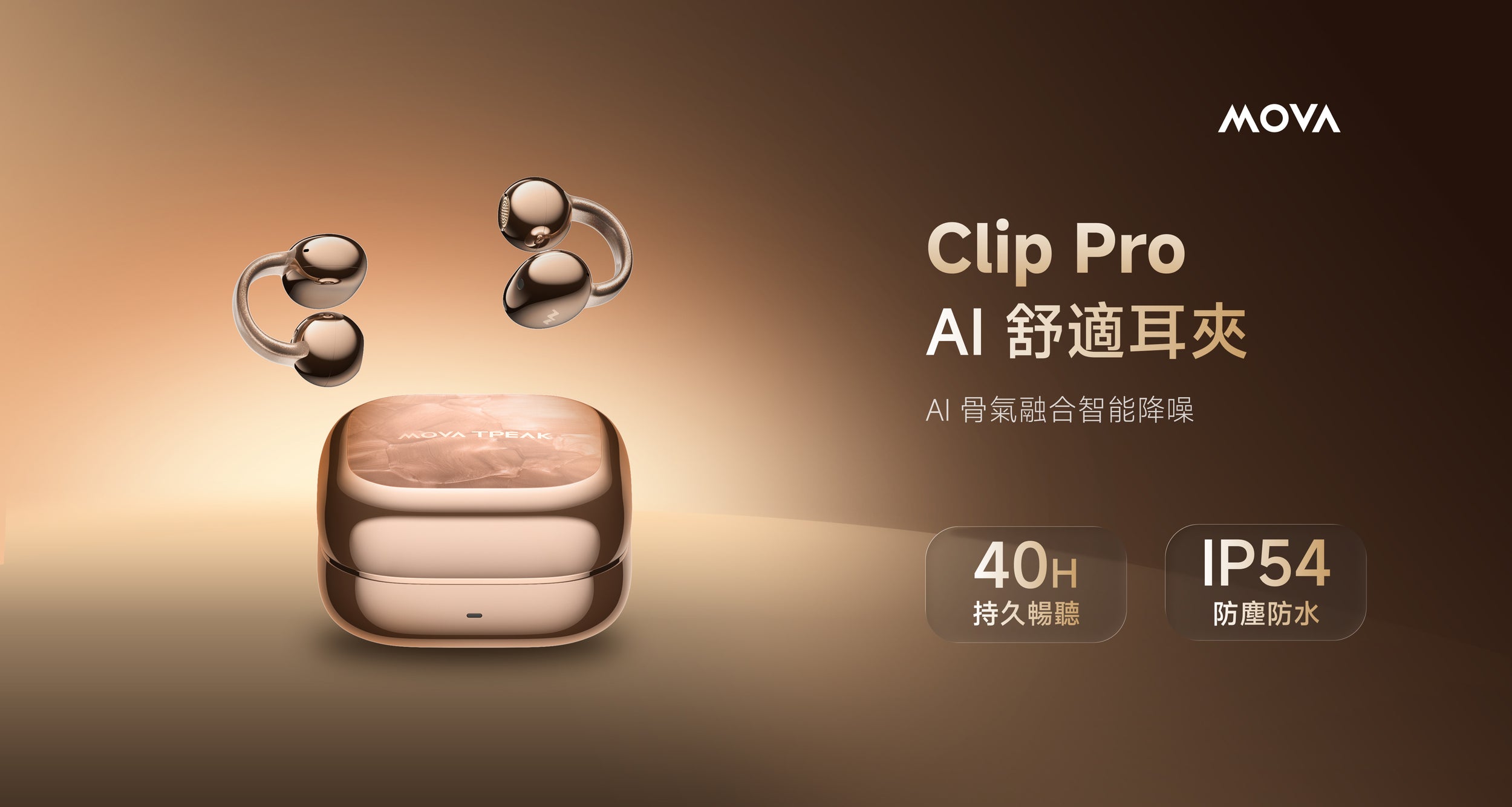 MOVA TPEAK Clip Pro 採用 3D 耳廓仿生架構 + 雲感 C 橋設計,徹底告別佩戴痛感。