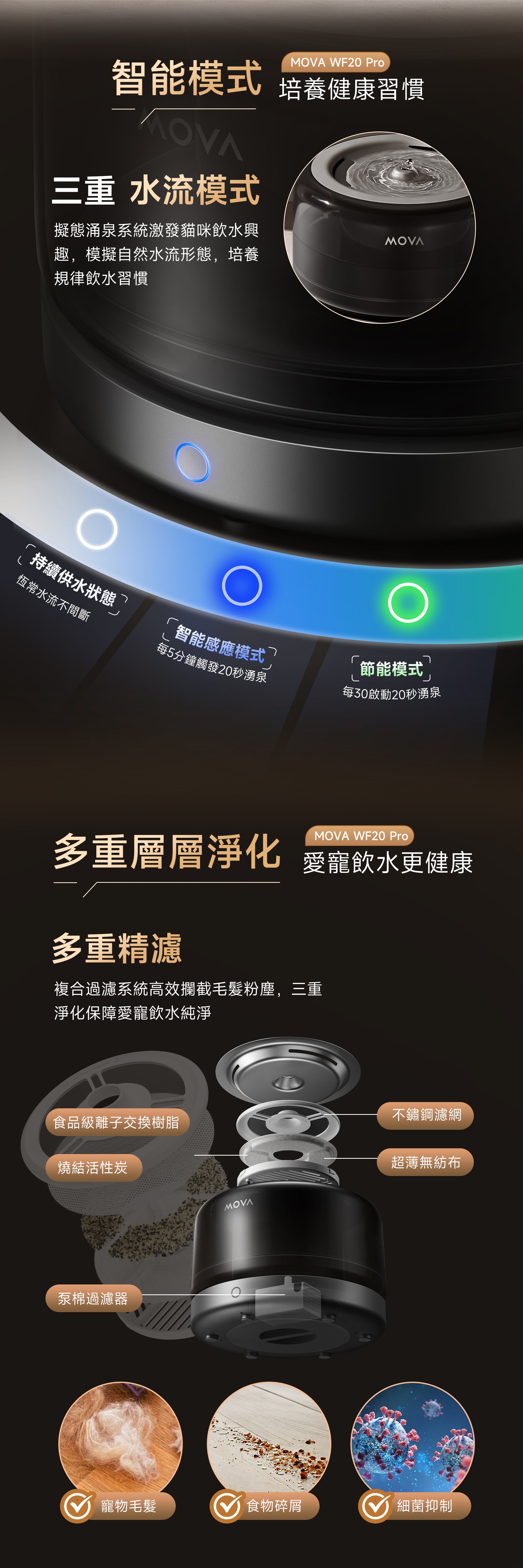 「多層過濾系統」過濾毛髮、雜質與異味,飲水更安心