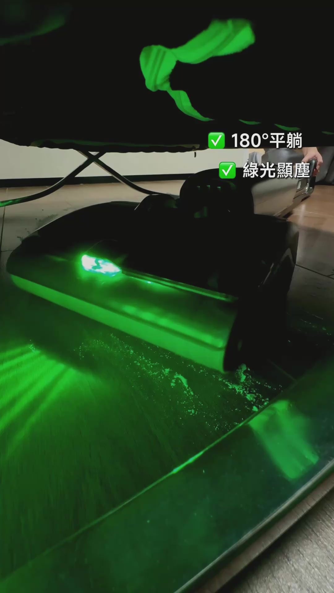 • 綠光照明:暗處看得清,髒汙無所遁形,一次清潔搞定